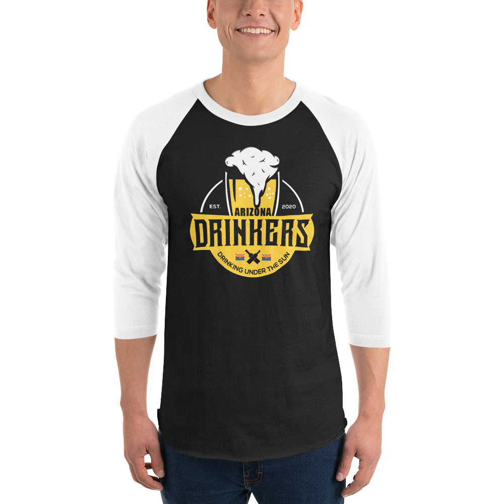 3/4 sleeve raglan shirt with Arizona Drinkers Logo On Front In Yellow