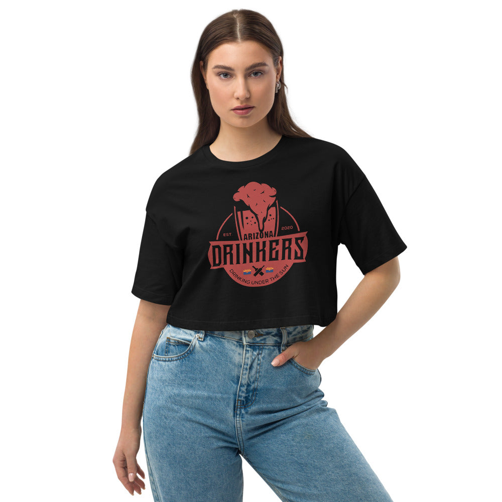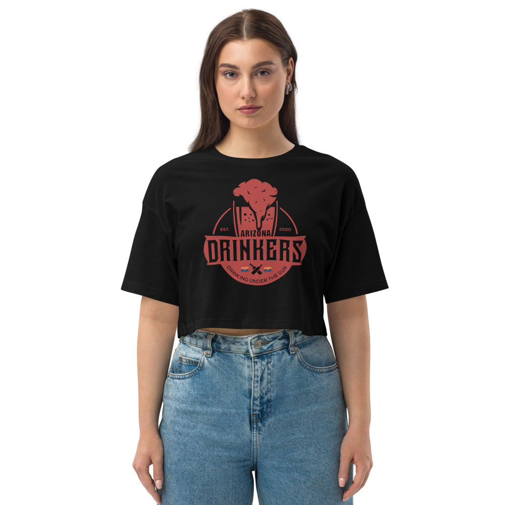 Loose drop shoulder crop top with Arizona Drinkers Logo on Front in Red