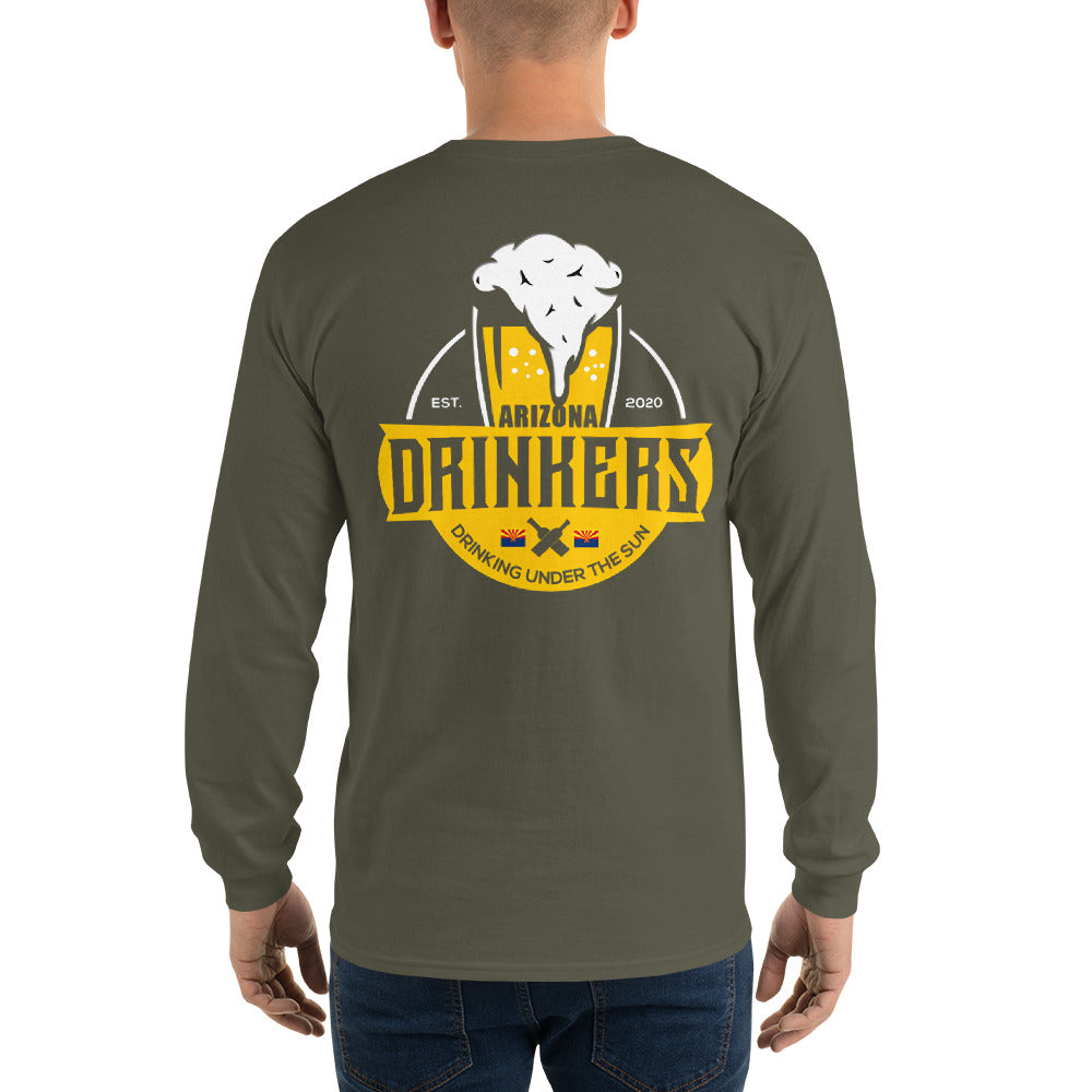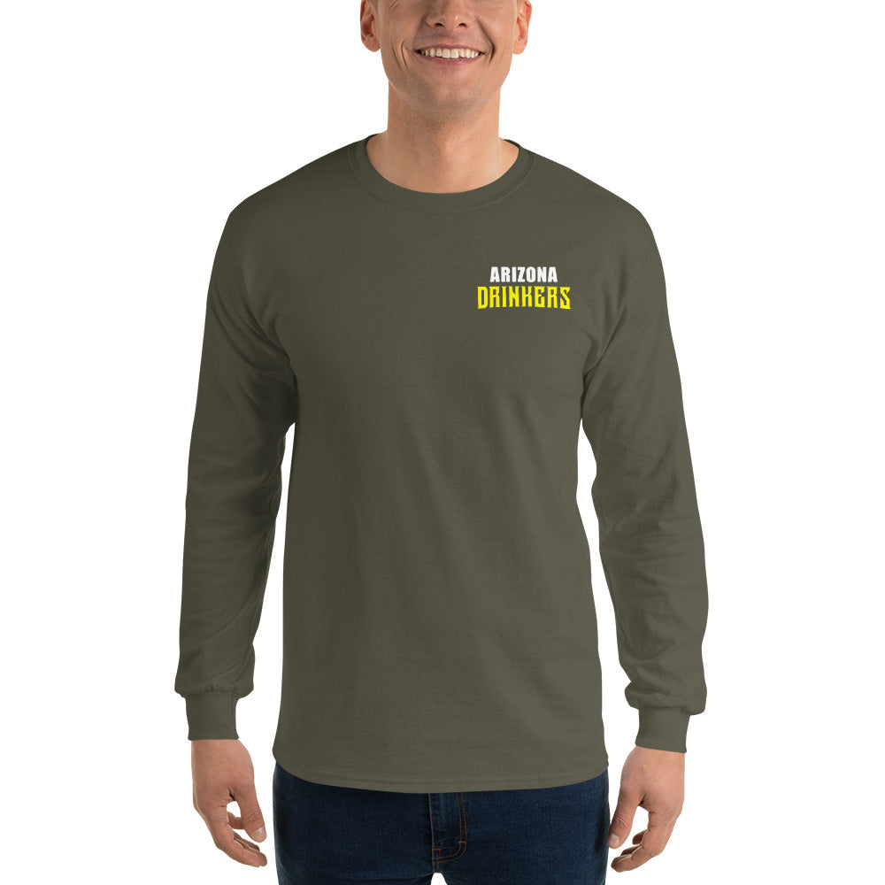 Men’s Long Sleeve Shirt with Arizona Text on Front and Arizona Drinkers Logo on Back