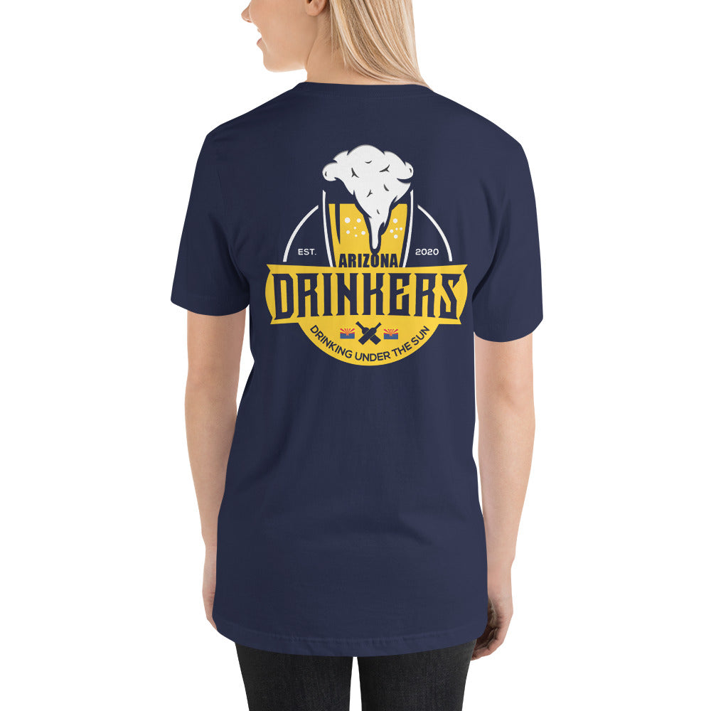 Short-sleeve unisex t-shirt with Arizona Drinkers Logo on Back