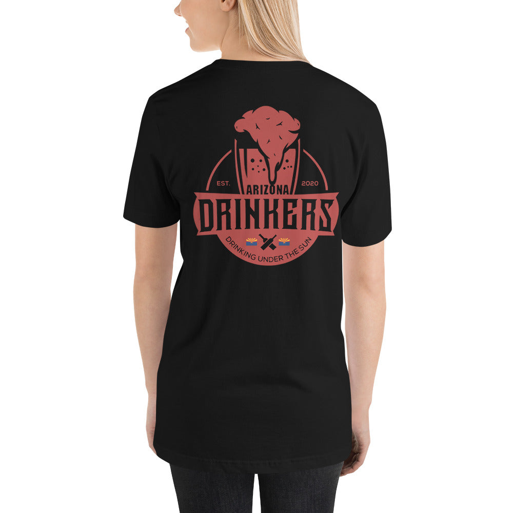Short-sleeve unisex t-shirt with Arizona Drinkers Logo on Back