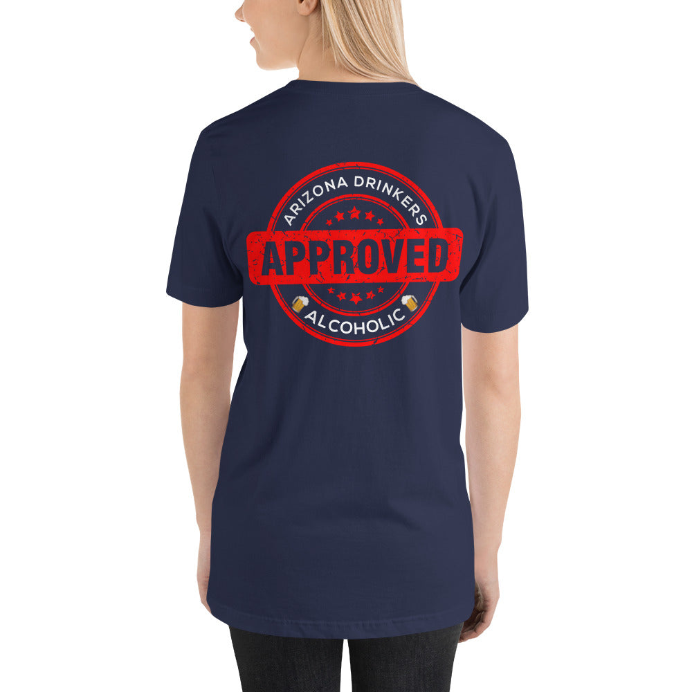 Short-sleeve unisex t-shirt with Arizona Drinkers logo on Front and Drinkers Text on Back