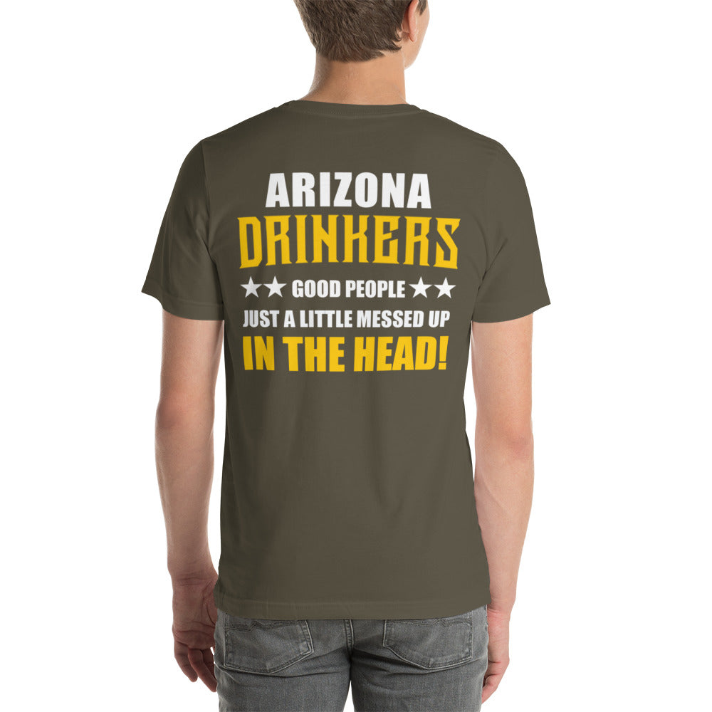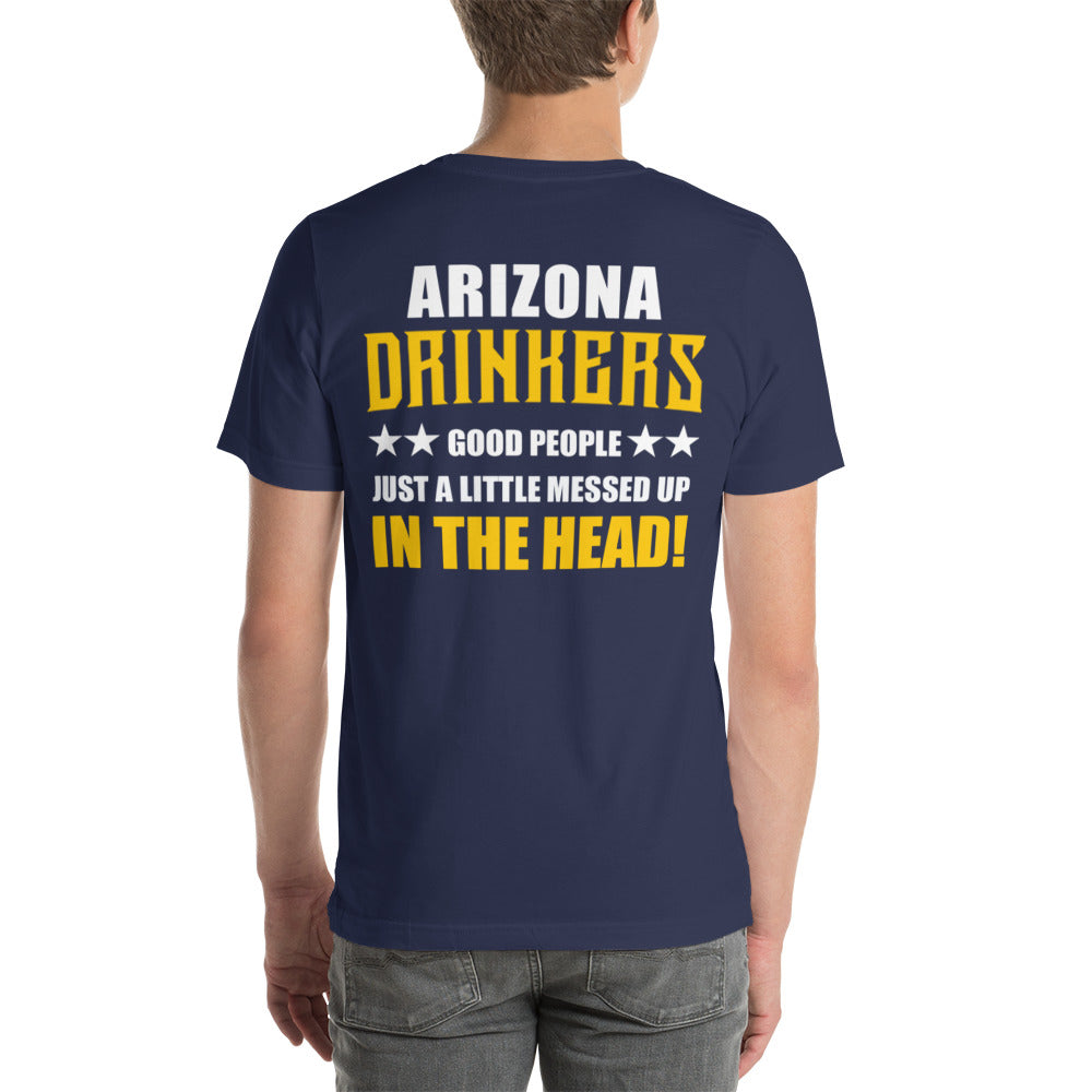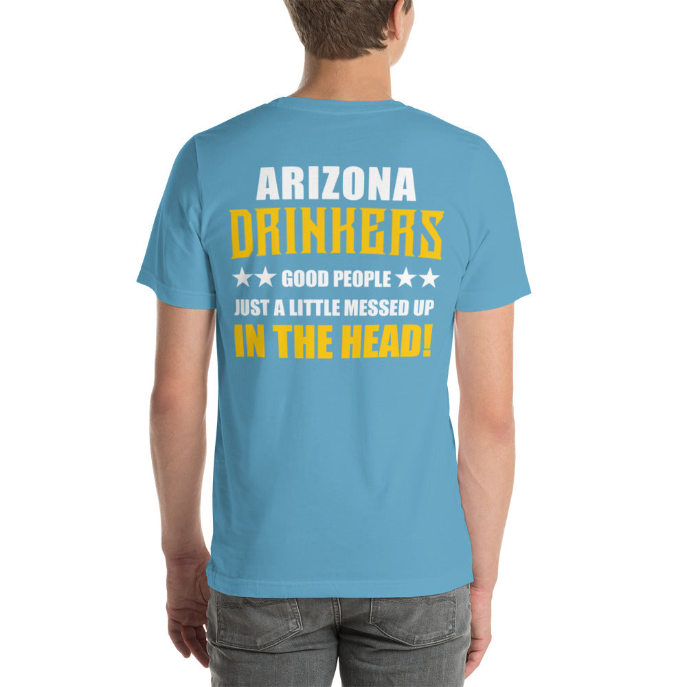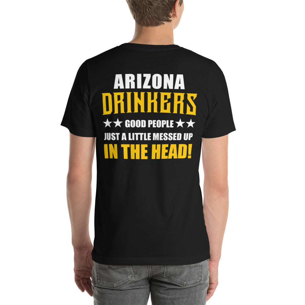 Short-Sleeve Unisex T-Shirt with Arizona Drinkers on Front and Drinkers Text on Back