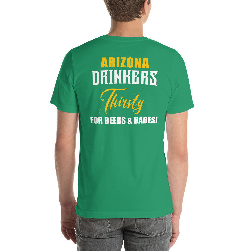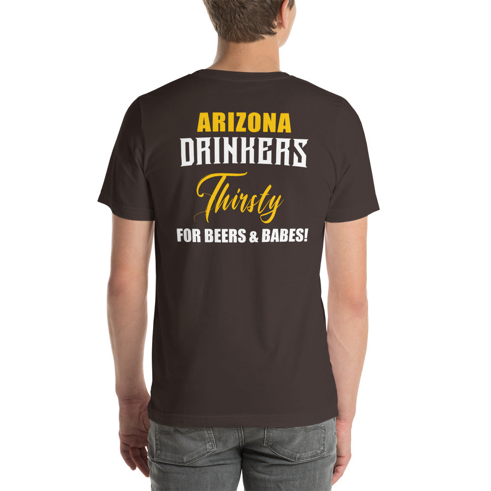 Short-Sleeve Unisex T-Shirt with Arizona Drinkers on Front and Drinkers Text on Back