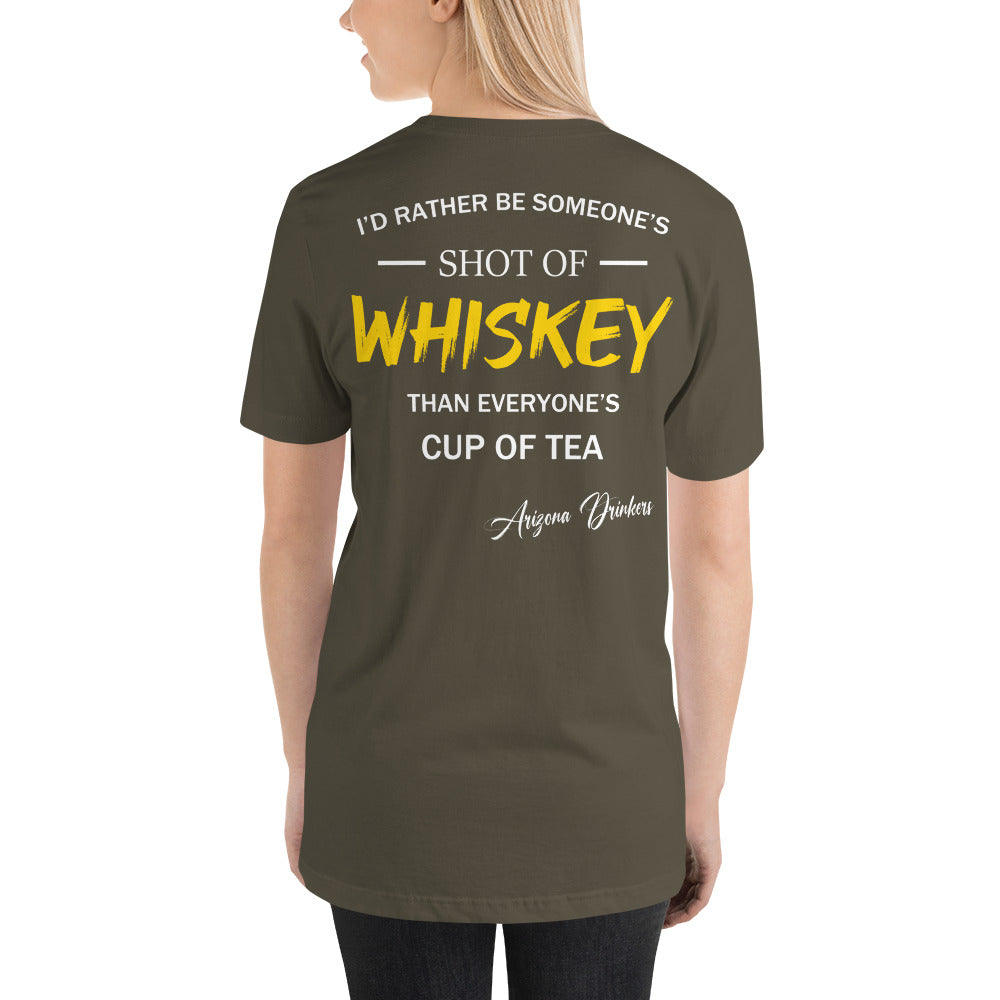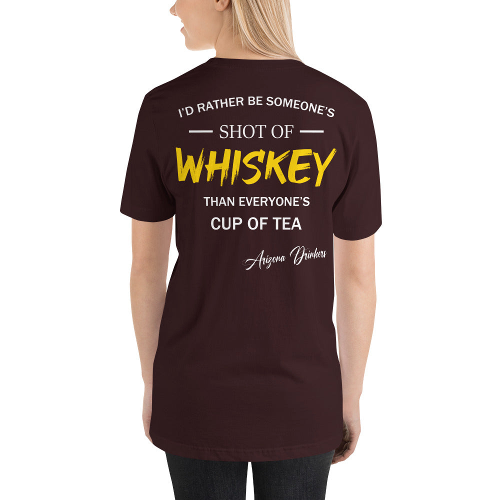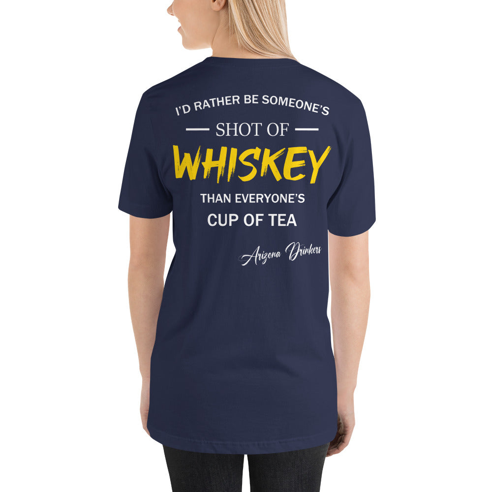 Unisex t-shirt with Arizona Drinkers Logo on Front and Drinkers Text on Back