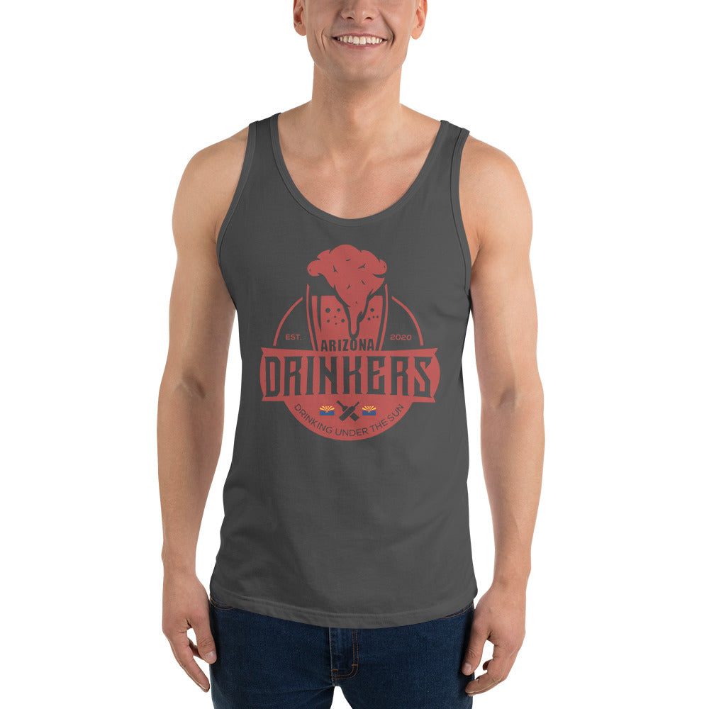 Unisex Tank Top with Arizona Drinkers Logo on Front in Red