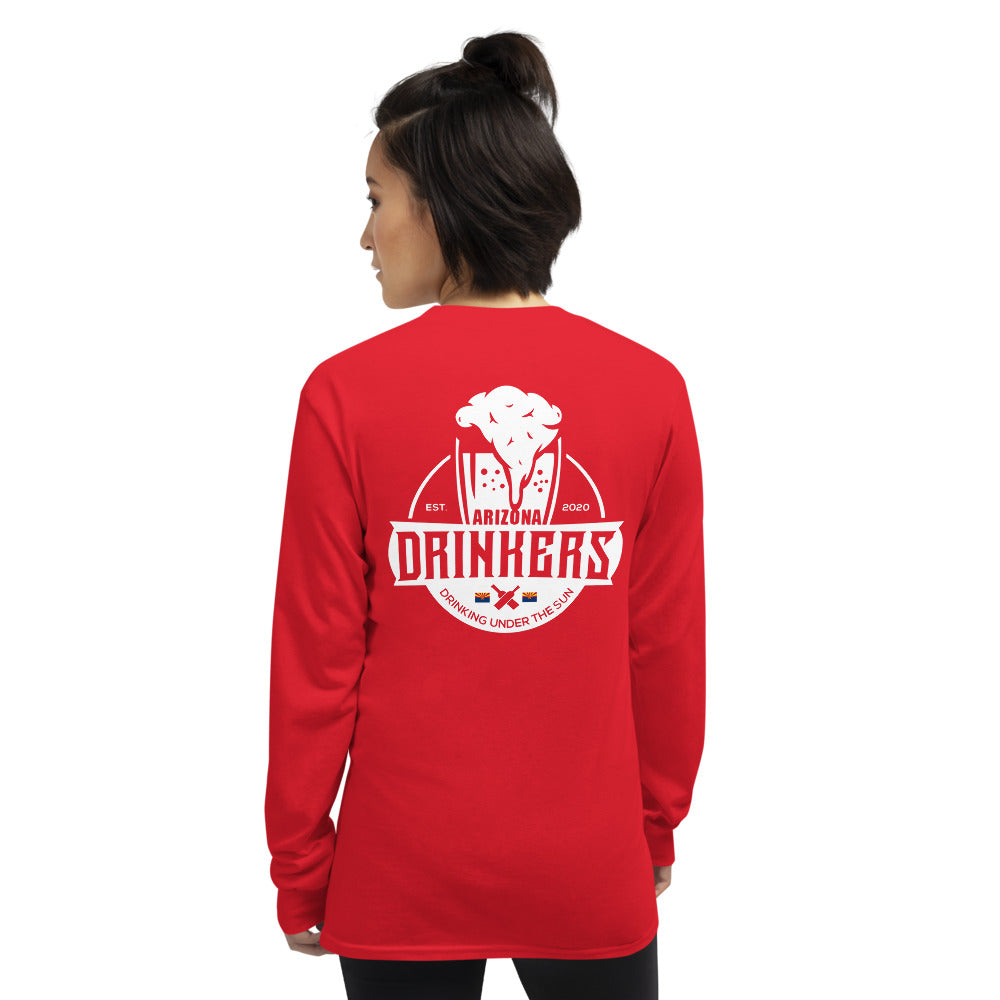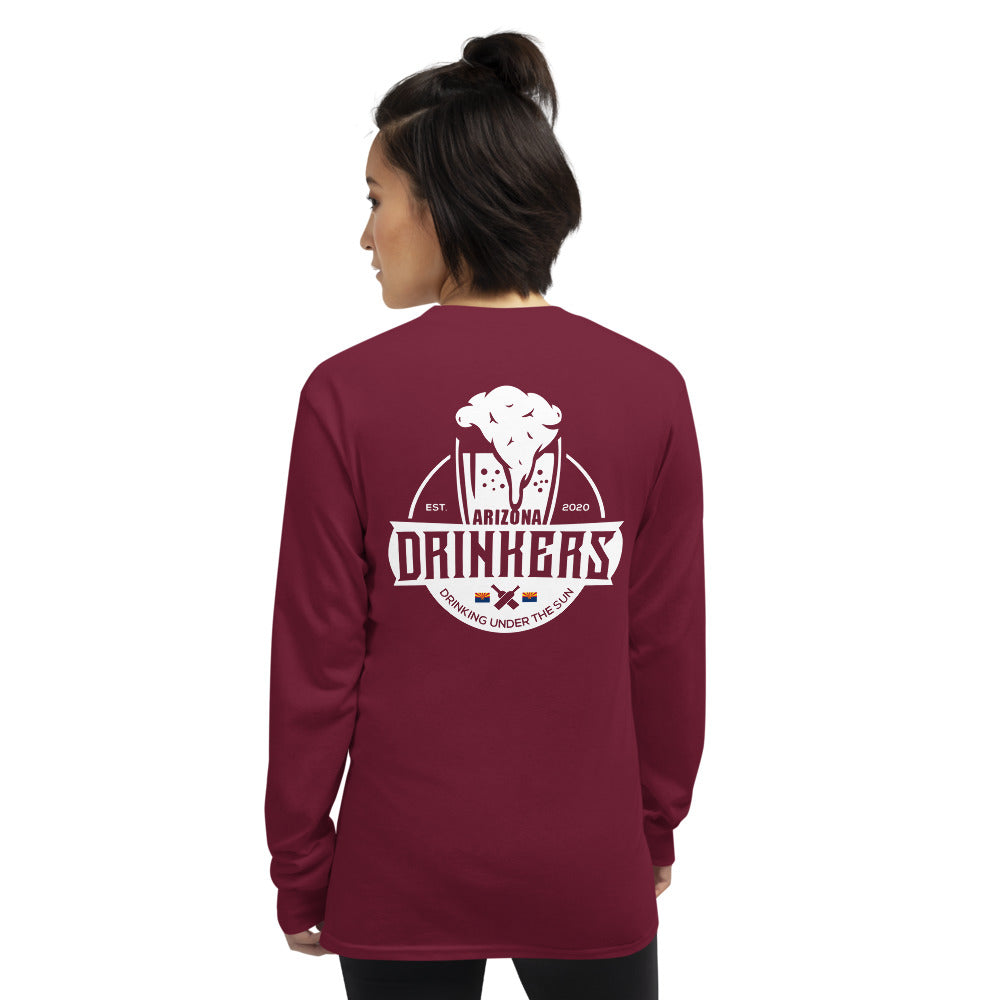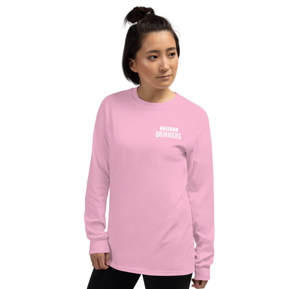 Women’s Long Sleeve Shirt with Arizona Text on Front and Arizona Drinkers Logo on Back